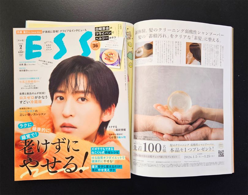 「真の髪ケア」が展開する髪のクリーニング弱酸性シャンプーバーが雑誌ESSEに掲載されました。